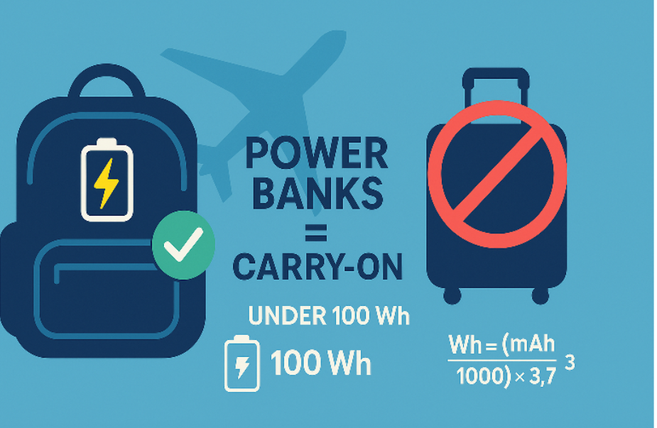 Most airlines allow power banks up to 100Wh without approval. For 100-160Wh, airline approval is needed. Above 160Wh, power banks are usually prohibited.